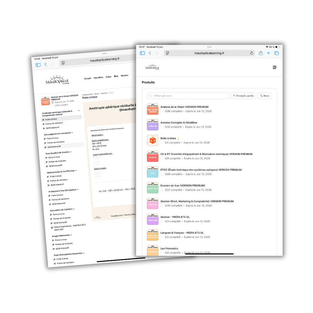 Apprends, entraîne-toi, progresse avec MaudOptical Learning. Des ressources fiables et spécialisées pour réussir tes études en optique. 🎓